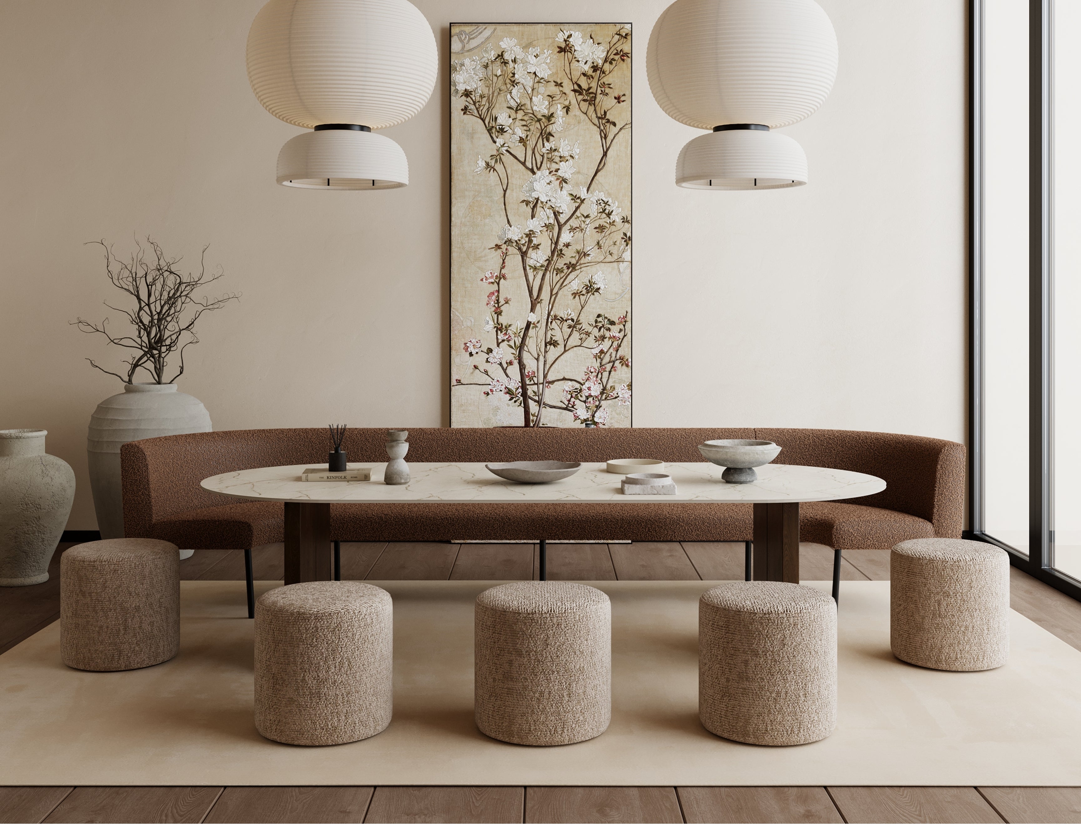 Amber Eetkamerbank 160cm - Stof Monolith 02 Creme
